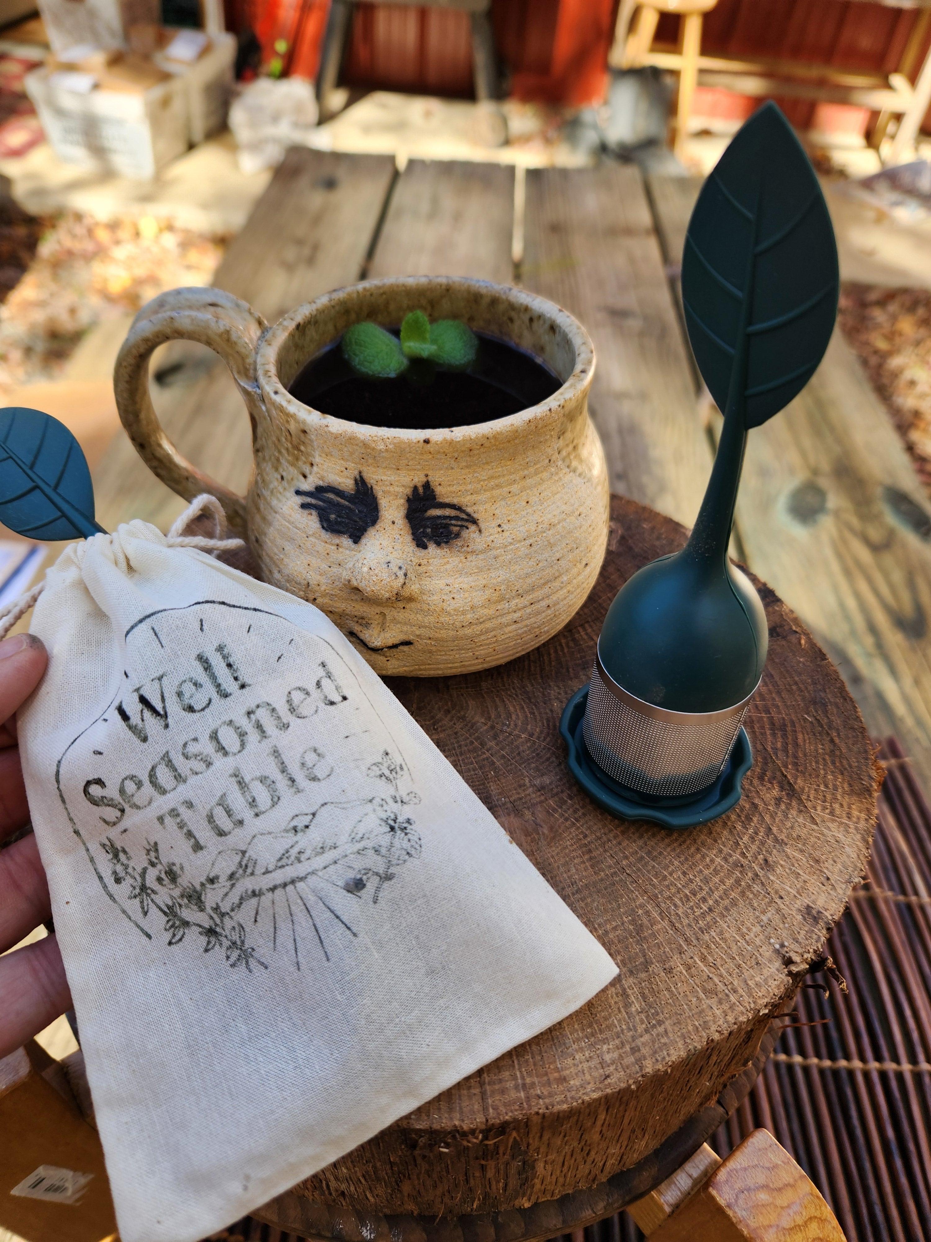 Comes in a muslin bag stamped with the Well Seasoned Table logo. Muslin bag can also be used to infuse a large batch of tea for your friends or family!