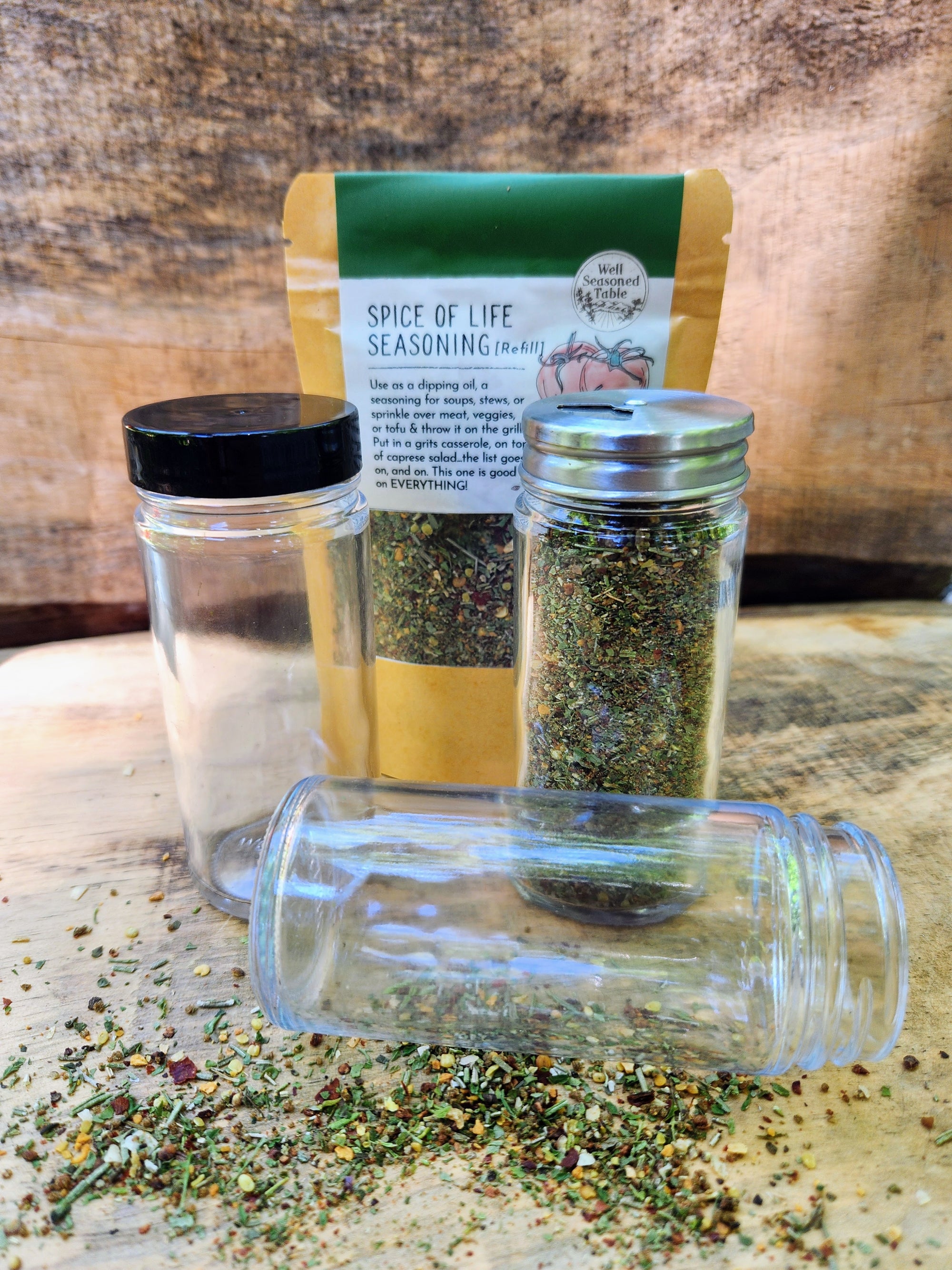 This 3.4 oz. round recycled glass jar embodies a timeless and traditional spice jar shape, making it a classic choice. Whether used for spices, herbs, or other storage needs, this jar combines functionality with sustainability, making it an excellent choice for conscious consumers.