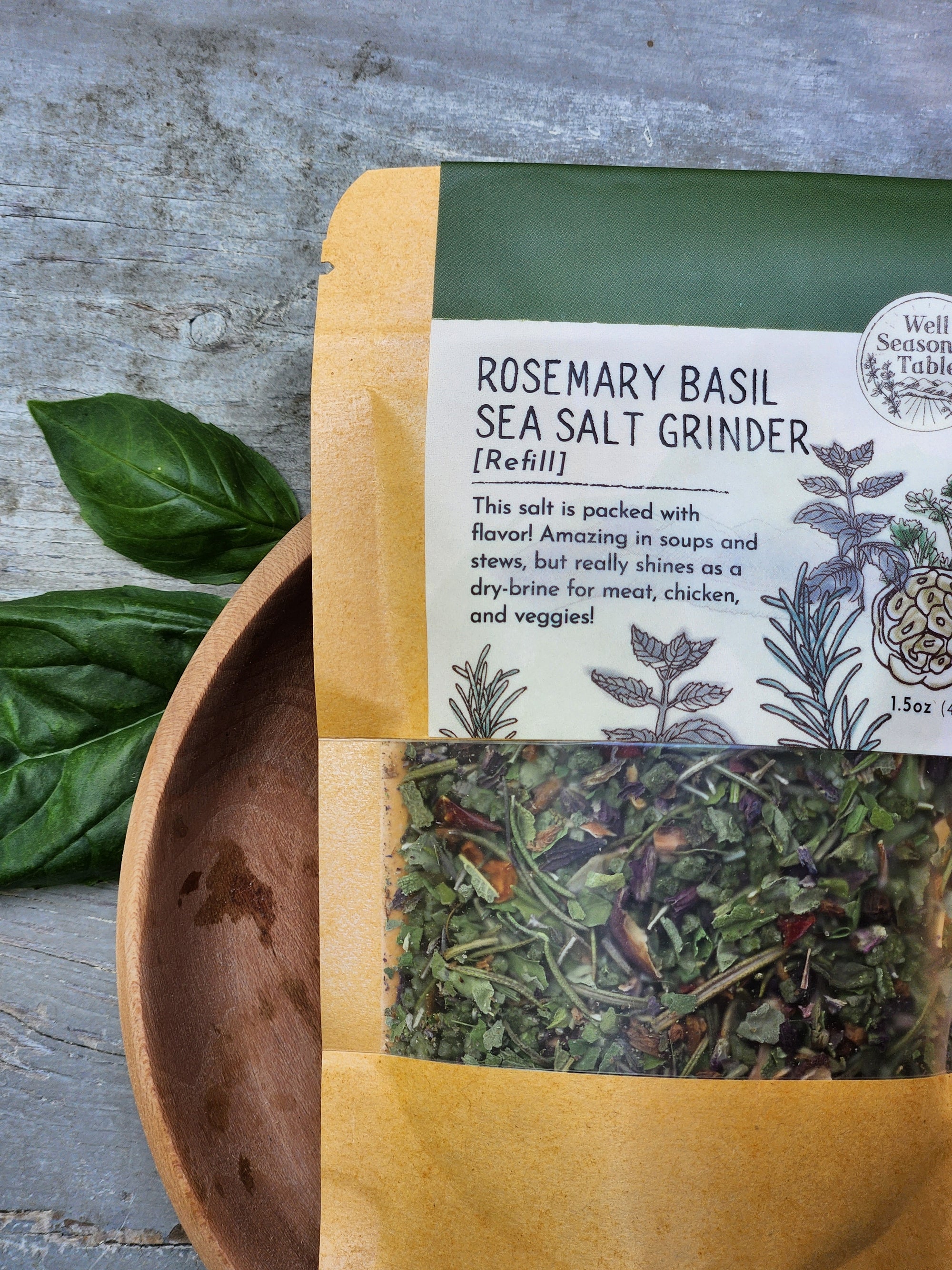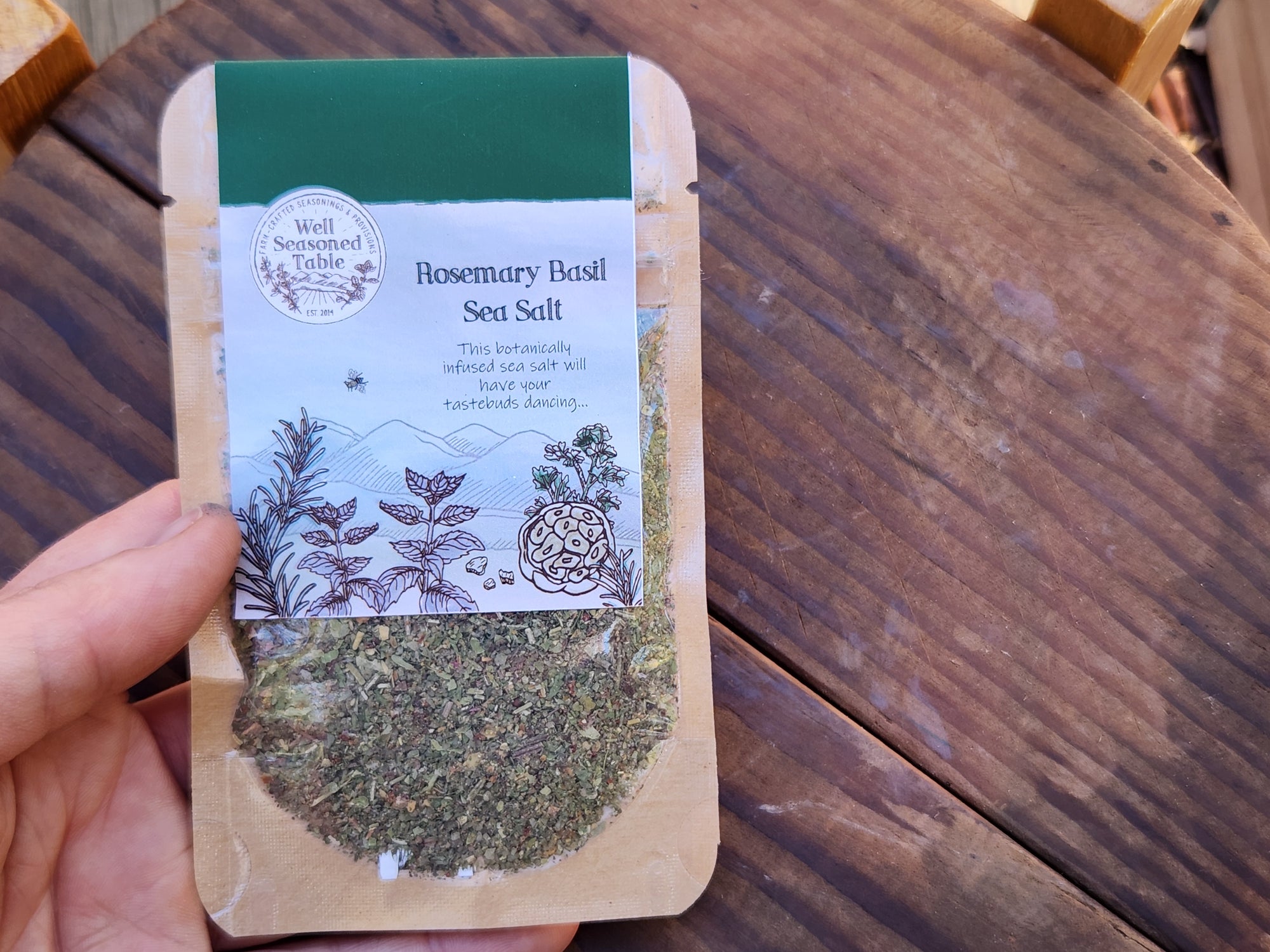This salt is packed with flavor! Amazing in soups and stews, but really shines as a dry-brine for meat, chicken, and veggies! Featuring basil and parsley from Fiddler's Green Farm in the mountains of North Carolina. The red onions were sourced from Gaining Ground Farm in Leicester, NC. Rosemary from Friends of the Trees Botanicals in WA State. And last, but not least...sage blossoms from our very own Well Seasoned Table Farm. Oh, and you can't forget the incredible Celtic Sea SaltĀ®!