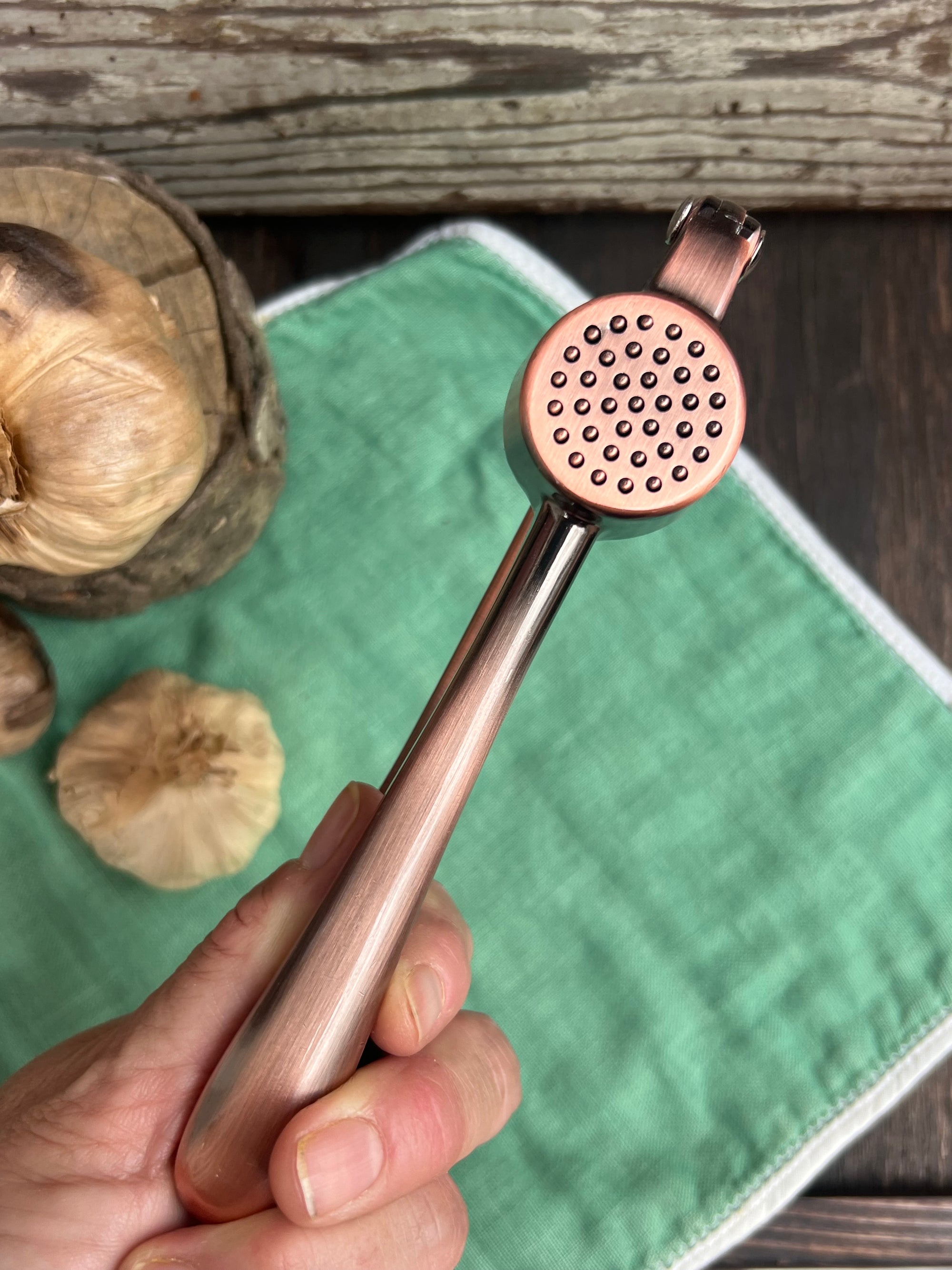 This premium garlic crusher and mincer is designed for simplicity and durability. It's made from high-quality materials, ensuring efficient extraction of garlic paste. The ergonomic design makes it easy to use with quick results and minimal effort on your wrists and hands, suitable for both professional and home kitchens.