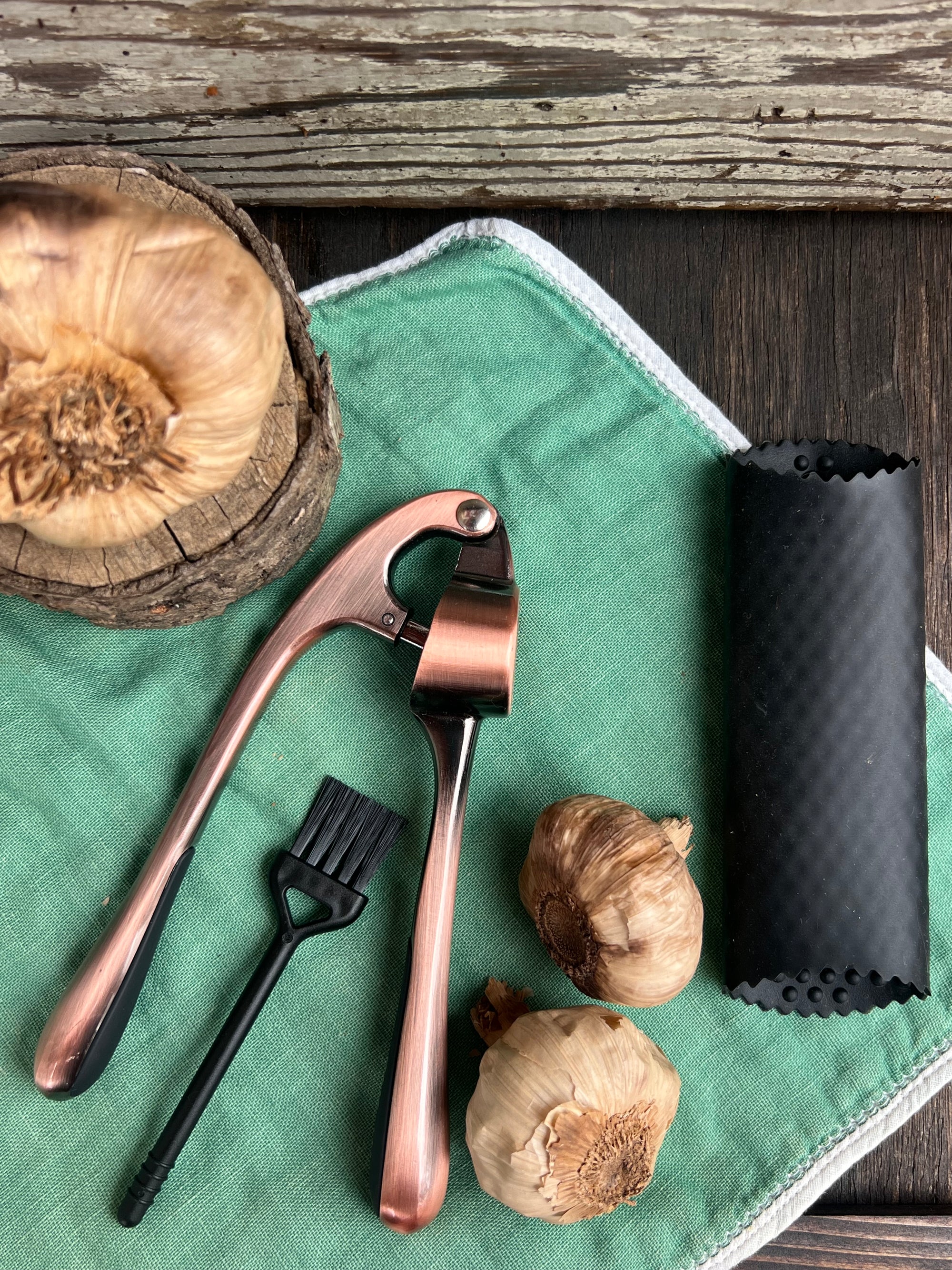 Comes with a bonus brush for cleaning and a silicone garlic peeler.