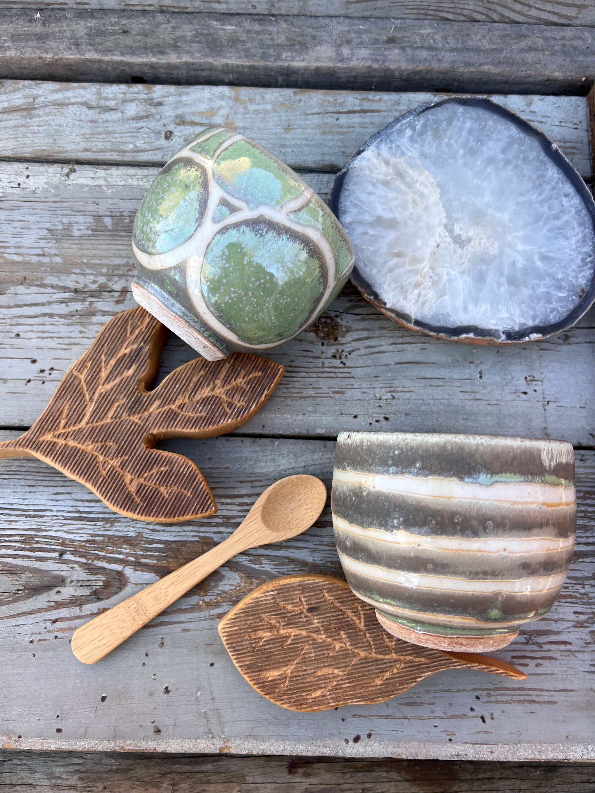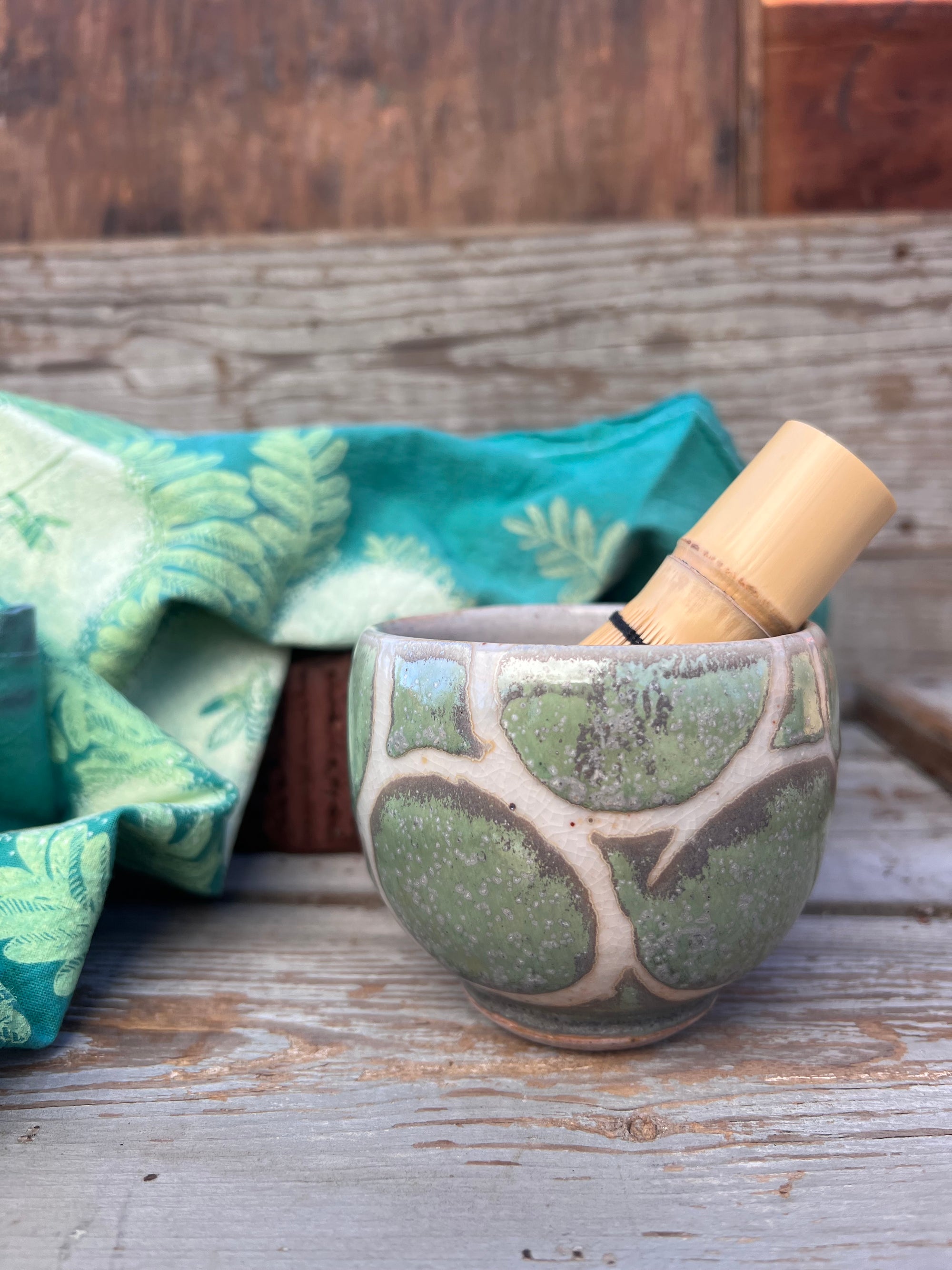 Locally made Tea Bowl by Julie Covington of Covington Pottery. These tea bowls are a perfectly magical wild companion to our new Wild Matcha or one of our Appalachian Herbal Teas! Complete with our sustainable Matcha Whisk (AKA Chasen). Be sure to check out our "Perfectly Wild Cuppa Matcha" Sustainable Bamboo Spoon!